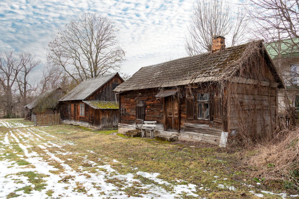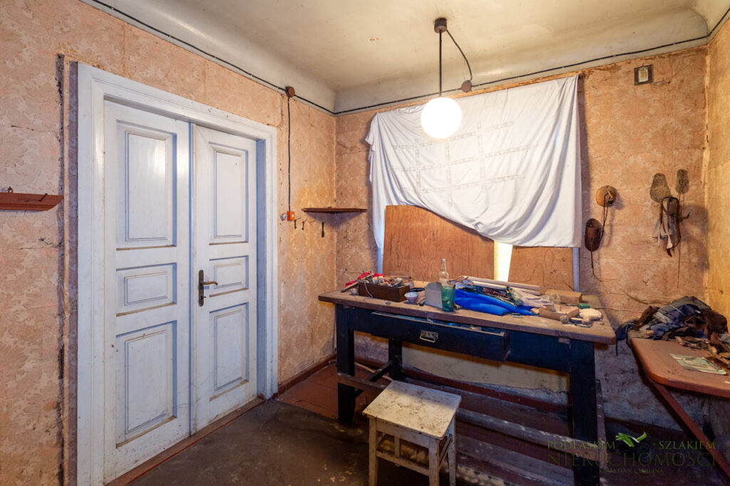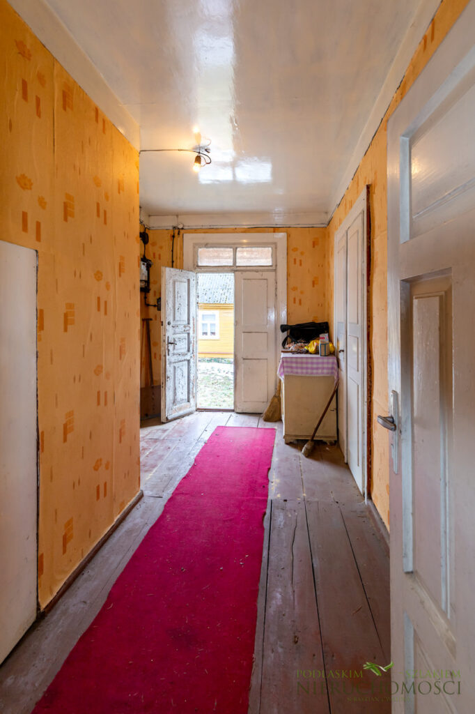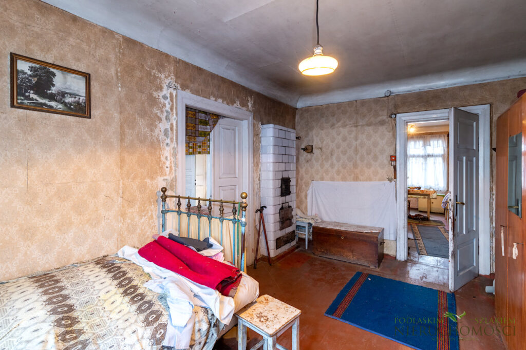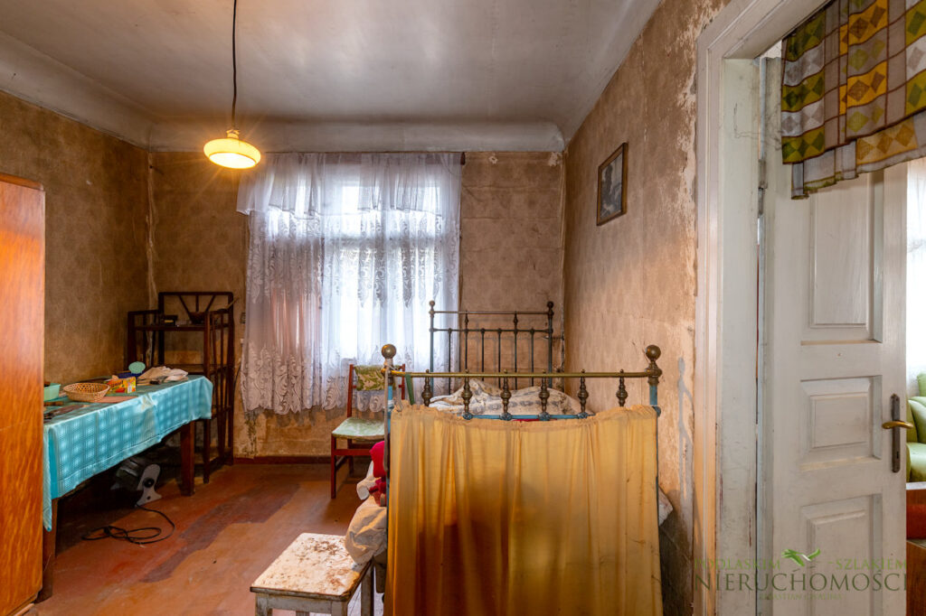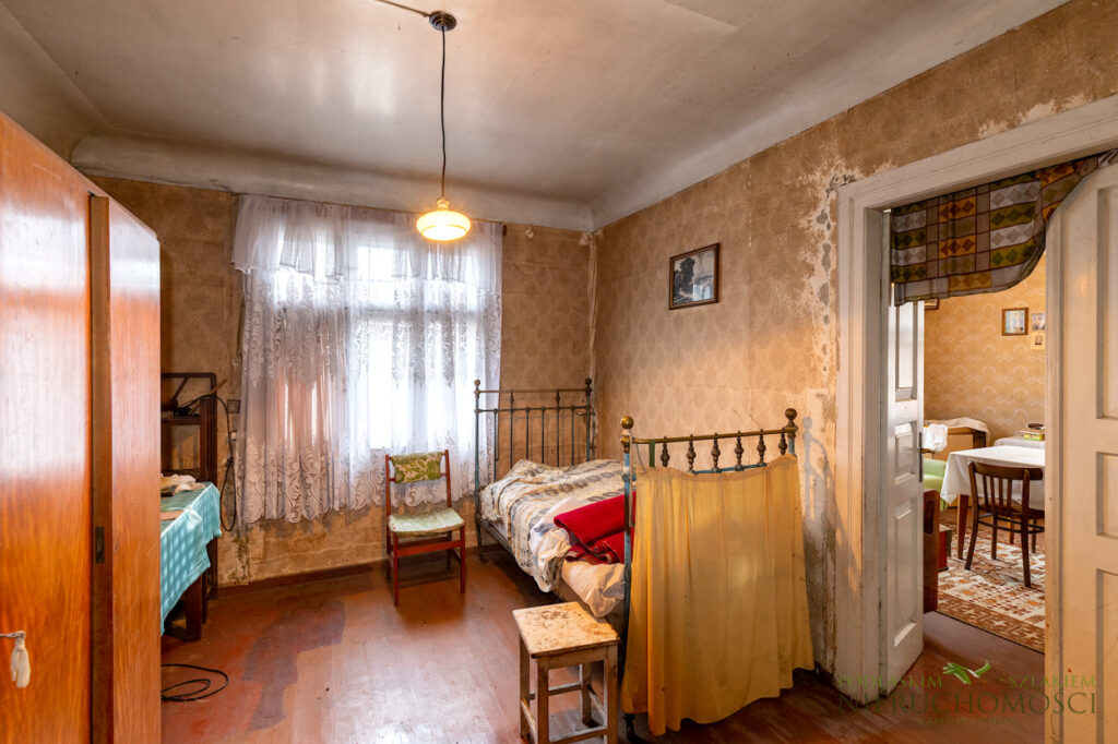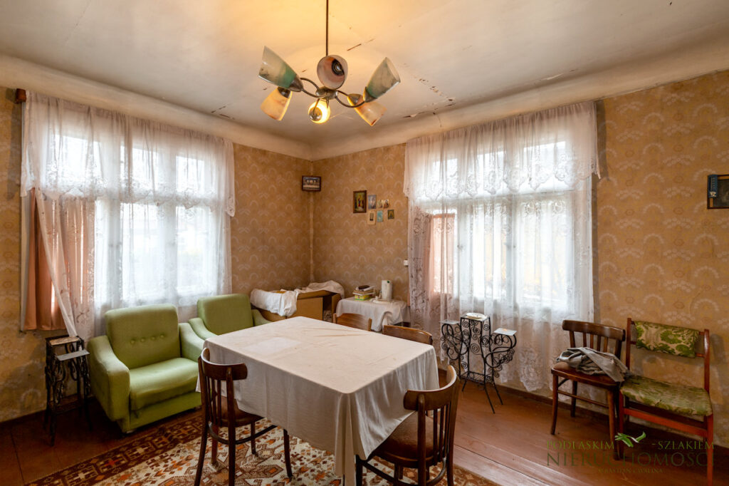 Drewniana konstrukcja budynku mieszkalnego jest z okresu lat 60-tych. Bryła budynku składa się z parteru, na którym znajduje się przedpokój, trzy (3) pokoje oraz kuchnia. Poddasze tworzy nieużytkowa otwarta przestrzeń.