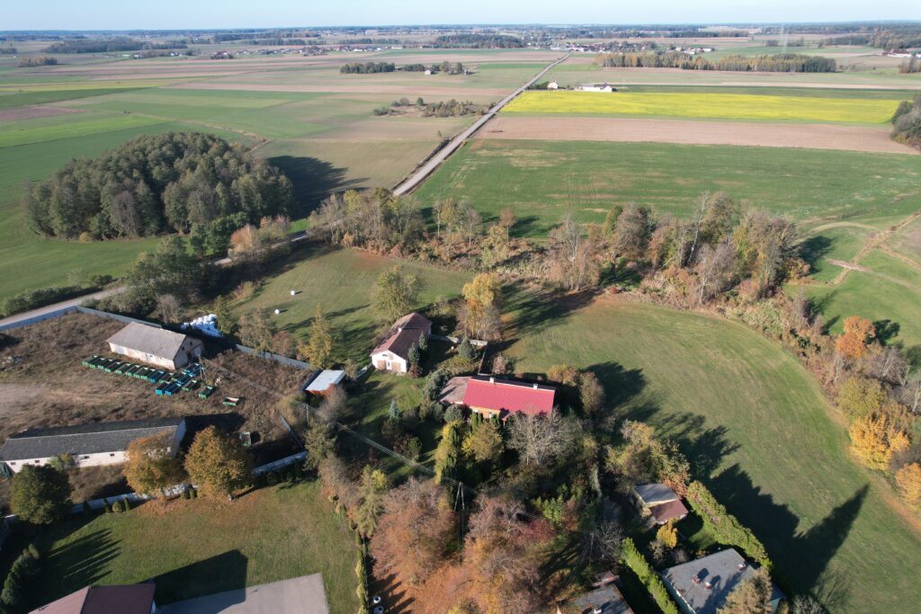 Przedmiotem sprzedaży jest nieruchomość gruntowa zabudowana składająca się z pięciu (5)   działek bezpośrednio sąsiadujących ze sobą, tworzących jedną całość, o łącznej powierzchni 2,8578 h. Na terenie dwóch z tych działek znajduje się zabytkowy dwór z  początku XX wieku, wpisany do rejestru zabytków (nr rej.: A-406 z 30.05.1990r.) oraz dwa budynki gospodarcze.