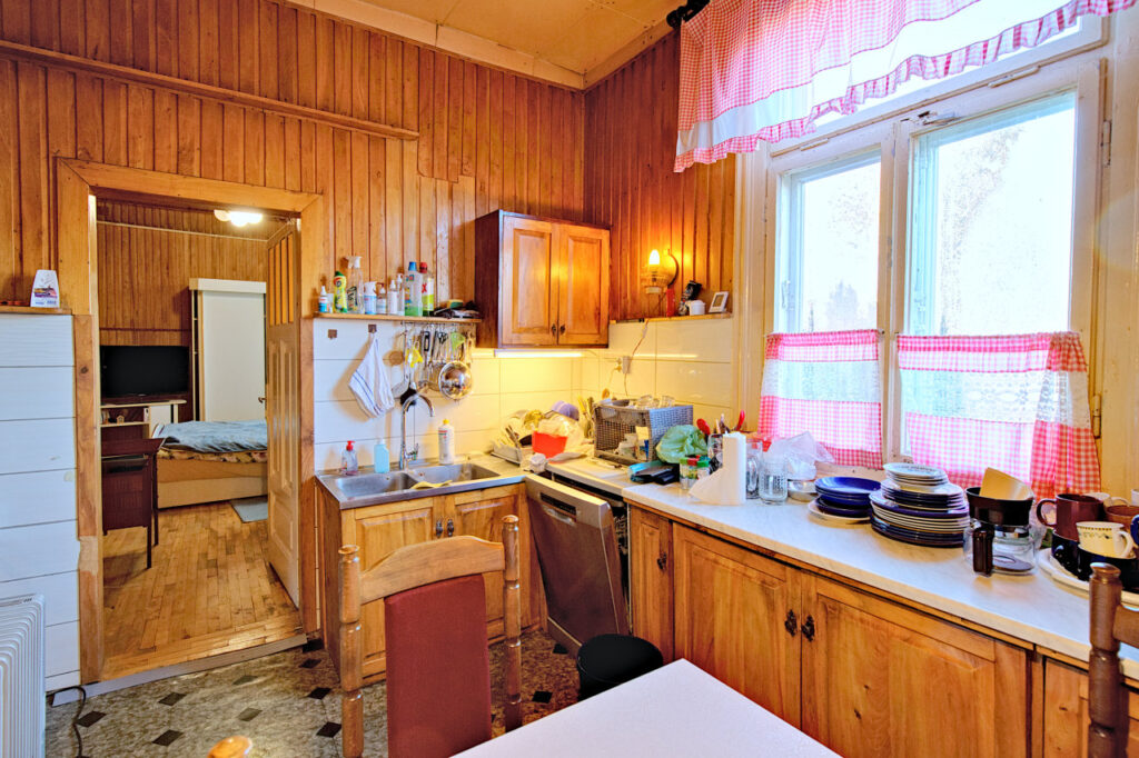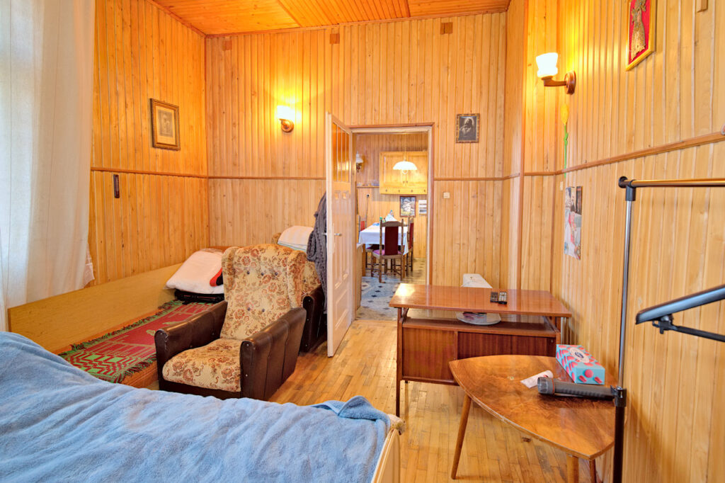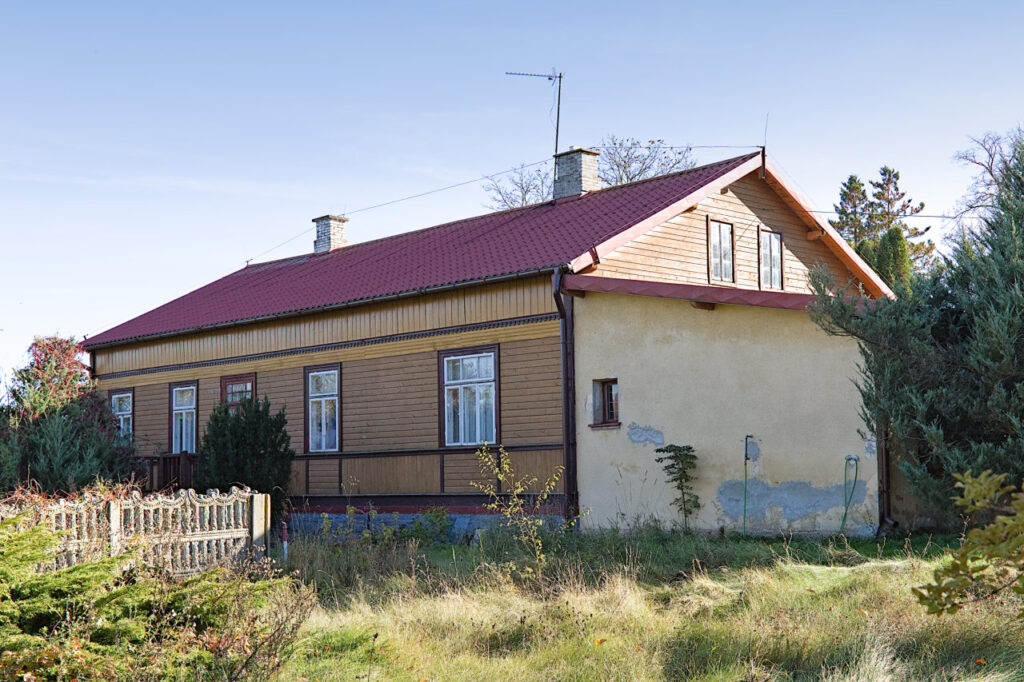 Unikatowy wolnostojący budynek mieszkalny o dużych walorach architektonicznych,  wzniesiony w tradycyjnej technologii drewnianej, z murowaną dobudówką, posadowiony na fundamentach betonowych. Obiekt jednokondygnacyjny, z poddaszem nieużytkowym, częściowo podpiwniczony, o powierzchni użytkowej ok. 180 m² przystosowany do zamieszkania całorocznego wymagający konserwacji. Program funkcjonalny budynku (parter): korytarz, trzy (3) pomieszczenia gospodarcze, łazienka z wc, kuchnia i sześć (6) pokoi. Źródłem ciepła i ciepłej wody użytkowej jest kocioł na paliwo stałe (drewno i ekogroszek) zlokalizowany we własnej kotłowni oraz piece kaflowe.